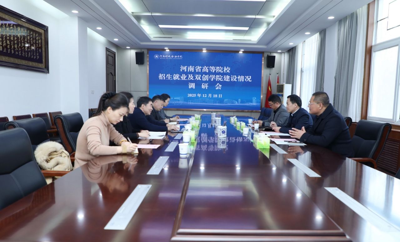 12月18日,民建省委会二级巡视员、河南中华职业教育社副主任李峰一行来我校调研我省高校招生就业及创新创业教育工作。副校长王忠勇接待调研组并主持召开座谈会。招生就业处、创新创业学院、计算机与人工智能学院等部门负责同志参加调研交流。